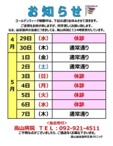 ゴールデンウィーク期間の外来診療について