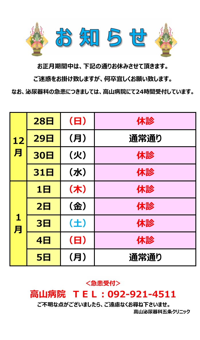 患者の皆様には大変ご迷惑をおかけいたしますが、ご理解のほど宜しくお願い致します。